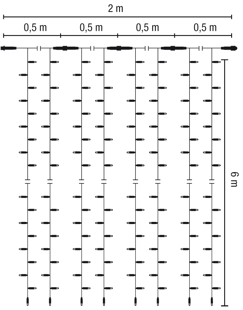 LED-Drape Lite 800 2x6m 36V 28,8W Outdoor Outdoor-Lichtervorhang mit Trägerkabel, von dem die einzelnen Stränge im 90°-Winkel abhängen. Mit Hilfe des patentierten QUICK-FIX-Systems können mehrere (Erweiterungs-)Segmente problemlos aneinander gekoppelt werden. Ideal zum Dekorieren von Flächen. Zudem kann der Vorhang in verschiedenförmige Rahmen gespannt werden. Durch das Bündeln mehrerer Strängen lassen sich beispielsweise Eingänge und Fenster hervorragend in Szene setzen. Energieeffizienzklasse: nicht kennzeichnungspflichtig