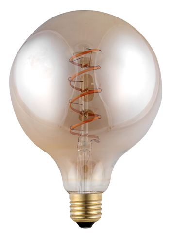 LED Globeform Filament Flex Axial 125x180mm LED-Chiptechnologie in Wendel-Optik, dimmbar mit getesteten Dimmern. Gühlampenähnliches Licht hinter getöntem Glas erzeugt eine angenehme Atmosphäre. Ideal für offene Pendelleuchten. Quecksilbergehalt (mg): 0