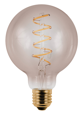 LED Globeform Filament Flex Axial 95x135mm LED-Chiptechnologie in Wendel-Optik, dimmbar mit getesteten Dimmern. Gühlampenähnliches Licht hinter getöntem Glas erzeugt eine angenehme Atmosphäre. Ideal für offene Pendelleuchten. Quecksilbergehalt (mg): 0