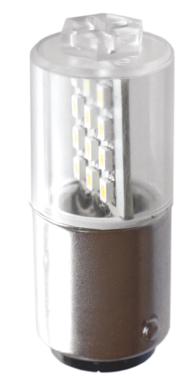 LED-Leuchte 18,5x50mm mit 12 SMD-LED Einsetzbar als Melde-/Warnlampe. Die LED-Platine steht senkrecht im Sockel und ist mit 12 LEDs, die alle in eine Richtung (180°) abstrahlen, bestückt. Zusätzlicher Überspannungsschutz. Ausgelegt für AC/DC Betrieb. Serienmäßig für Betriebsspannung von 230V. Energieeffizienzklasse: nicht kennzeichnungspflichtig