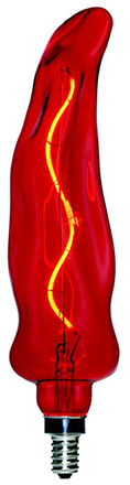 Farbige Filament-LED in Peperoni-Form, ideal für Pendelleuchten in Gastronomie oder Küche. Energieeffizienzklasse: nicht kennzeichnungspflichtig. Quecksilbergehalt (mg): 0