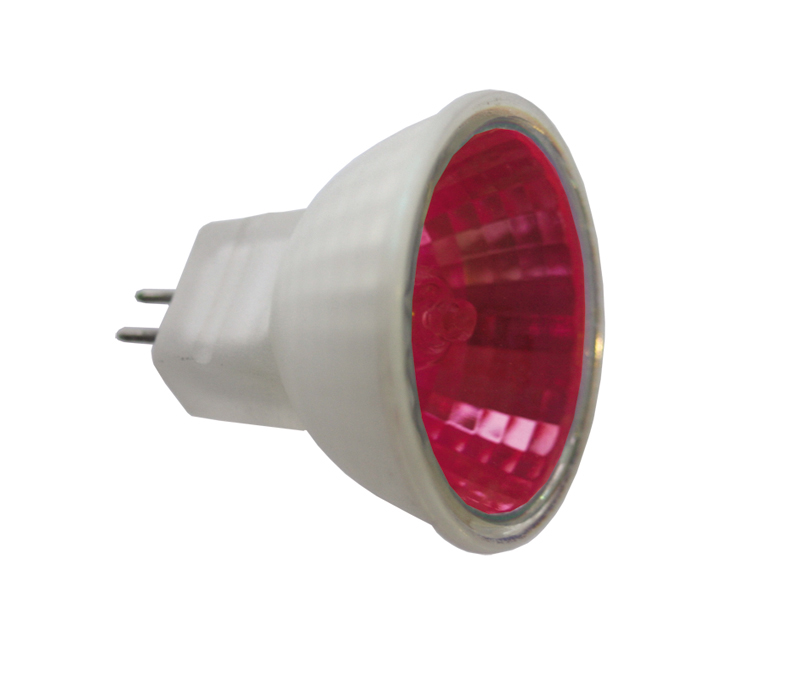 NV Halogenglühlampe 50x45mm Niedervolt Halogenglühlampe MR16, rot, Abstrahlwinkel 38°, Ansi-Code EXN, mit Kaltlichtreflektor und Frontglas Energieeffizienzklasse: nicht kennzeichnungspflichtig Quecksilbergehalt (mg): 0 Schaltzyklen: 8000 Farbwiedergabeindex (Ra): 100 Power-Faktor: 1