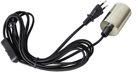 Textilkabel 3,5m mit E27 Fassung messing Stecker + Schalter, Kabel: schwarz, IP20