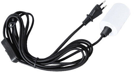 Textilkabel 3,5m mit E27 Fassung weiß Stecker + Schalter, Kabel: schwarz, IP20